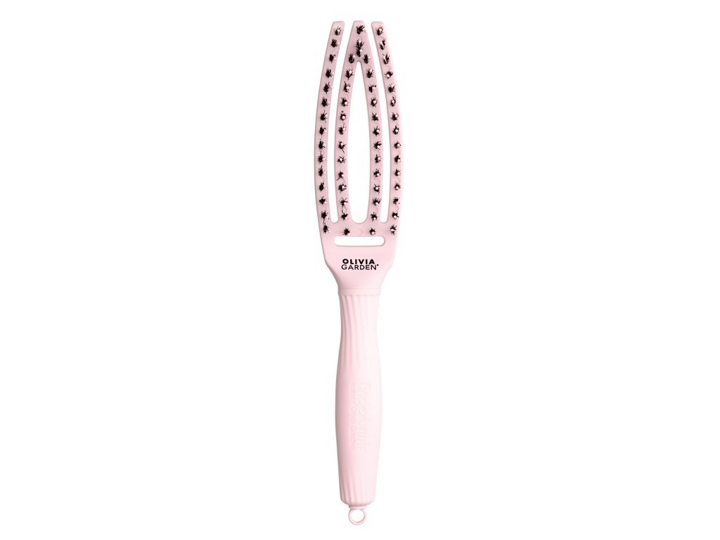 Olivia Garden Fingerbrush je revoluční kartáč navržený pro snadné a šetrné rozčesávání vlasů. Jeho zakřivený tvar dokonale kopíruje tvar hlavy, což zajišťuje maximální pohodlí při používání a precizní styling. Kartáč kombinuje 100% kančí štětiny a nylonové štětiny, které dodávají vlasům přirozený lesk, zároveň zajišťují jemné a efektivní rozčesávání, aniž by vlasy tahaly nebo poškozovaly.