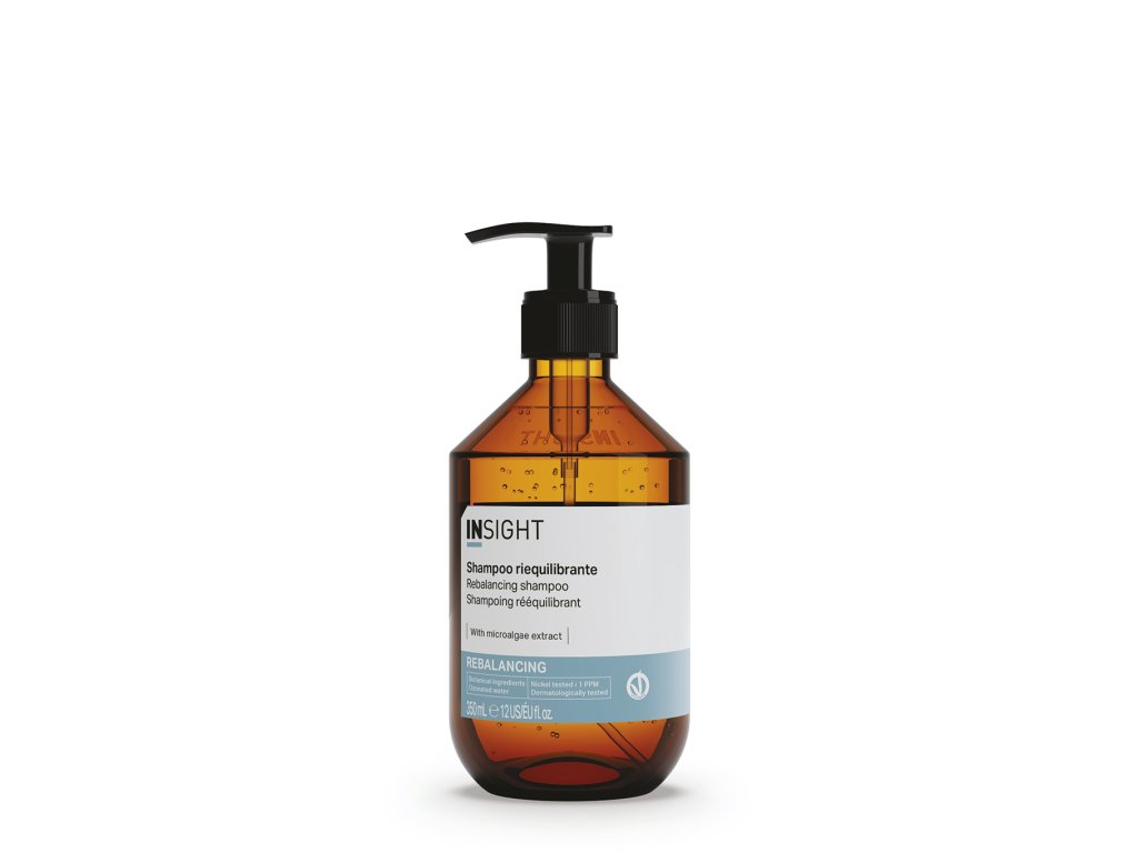 Šampon Insight Rebalancing obsahuje fytokomplex složený z extraktu z mikrořas, organického březového extraktu a organického levandulového extraktu, které mají silné zklidňující a normalizační účinky na pokožku hlavy.