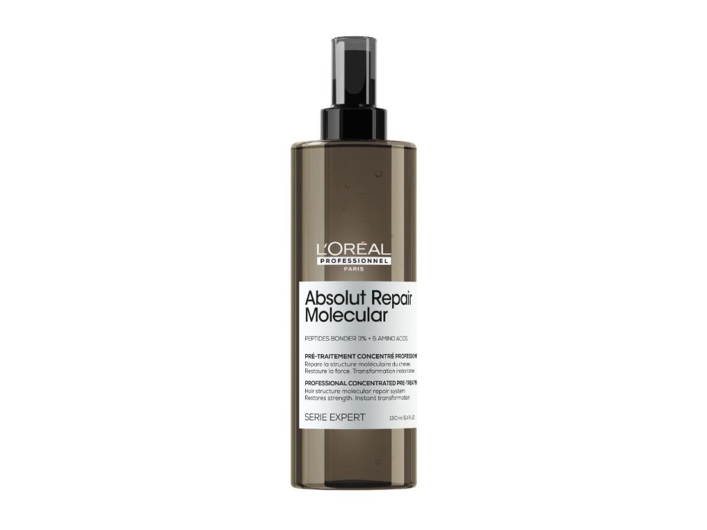 Více než jen obnova povrchu vlasu. Patentované, koncentrované složení přípravné péče obsahuje Peptides bonder a 5 aminokyselin, které doplňují molekulární strukturu vlasového vlákna. Navrací vlasům sílu, pružnost a přirozený pohyb.* Proniká do hloubky vlasového vlákna až na úroveň peptidů, kde obnovuje molekulární strukturu vlasu. Okamžitá viditelná proměna vlasů: usnadňuje rozčesávání, vlasy jsou opět obnovené a vlasová vlákna uhlazená. Tekutá textura se okamžitě vstřebává do vlasového vlákna a obnovuje molekulární strukturu vlasu bez zatížení. POUŽITÍ: Aplikujte pomocí rozprašovače na vlhké vlasy od délek ke konečkům. V závislosti na délce vlasů aplikujte 15 – 20 dávek pumpičky. Aplikujte po jednotlivých sekcích a vlasy uhlazujte. Protahujte do délek a konečků po dobu 1 až 2 minut. Neoplachujte. V dalším kroku aplikujte šampon Absolut Repair Molecular jako další vrstvu na přípravnou péči, poté opláchněte a pokračujte aplikací séra. V případě zasažení očí je ihned důkladně vypláchněte vodou. *Spotřebitelský test po 2 týdnech používání šamponu, séra a bezoplachové maskyDoplňkové parametry
