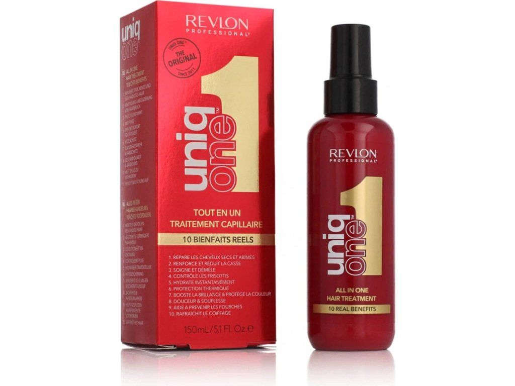 Rychlé a snadné oživení vlasové rutiny — hebkost a lepší vzhled během chvilky. Revlon Uniq One All In One je bezoplachová kúra (150 ml), která kombinuje 10 benefitů v jednom: proteinovou rekonstrukci pro posílení vlasů, tepelnou a UV ochranu, uhlazení proti krepatění a výrazné usnadnění rozčesávání. Vegan receptura a dermatologické testování zajišťují šetrnost pro všechny typy vlasů. Komplexní péče v jednom kroku Revlon Uniq One nabízí 10 benefitů v jednom přípravku, takže nahradí několik produktů. Vlasy získají lesk, hebkost a lepší tvar bez složité rutiny — ideální pro ty, kdo chtějí rychlý a efektivní výsledek. Proteinová rekonstrukce pro sílu vlasů Produkt využívá proteinovou rekonstrukci s obsahem sericinu a panthenolu, které vyživují a posilují vlasové vlákno. Výsledkem je snížené lámání, hladší povrch vlasů a lepší pevnost bez zatížení. Ochrana při stylingu i na slunci Sprej poskytuje tepelnou ochranu před fénováním a žehlením a zároveň filtry proti UVA/UVB, které pomáhají zabránit poškození vlivem slunce a vnějšího prostředí. Jednoduché použití a snadné rozčesávání Tekutá sprejová konzistence umožňuje rychlou aplikaci na mokré i suché vlasy. Usnadňuje rozčesávání, zabraňuje zacuchání a zkracuje dobu úpravy účesu — ideální pro každodenní péči i rychlé osvěžení. Šetrné složení a příjemná vůně Receptura je vegan a dermatologicky testovaná, obal obsahuje část recyklovaného PET. Přípravek zároveň vlasy příjemně provoní a dodá jim svěží finish bez mastného efektu. Klíčové vlastnosti 10 benefitů v jednom – regenerace, uhlazení, lesk a víc Bezoplachová sprej‑forma vhodná na mokré i suché vlasy Proteinová rekonstrukce (sericin, panthenol) pro posílení vlasového vlákna Ochrana proti teplu a UVA/UVB; výrazné usnadnění rozčesávání Vegan formulace a dermatologicky testováno Často kladené otázky Je Revlon Uniq One vhodný pro všechny typy vlasů? Ano. Revlon Uniq One je vhodný pro všechny typy vlasů — suché, barvené i mechanicky poškozené. Díky vegan formulaci a dermatologickému testování je šetrný k pokožce i vlasům, přičemž pomáhá s regenerací a usnadňuje rozčesávání. Jak mám produkt aplikovat na mokré a suché vlasy? Na mokré vlasy nastavíte sprej ze vzdálenosti cca 20 cm, rozčešete a upravíte běžným způsobem. Na suché vlasy nastříkejte do dlaní, rozetřete a zapracujte do délek a konečků. Množství přizpůsobte délce vlasů podle doporučení na obalu. Obsahuje přípravek živočišné složky a je testovaný na pokožce? Ano. Produkt má vegan složení a je dermatologicky testovaný, což zajišťuje, že je receptura bez živočišných složek a byla posouzena z hlediska snášenlivosti pokožky. Co když chci ochránit barvu a snížit třepení konečků? Používejte ho pravidelně jako součást mycí a stylingové rutiny: naneste na vlhké nebo suché vlasy do délek a konečků. Chrání barvu před vyblednutím a snižuje třepení při opakovaném používání, zejména pokud vlasy často tepelně upravujete.Doplňkové parametry